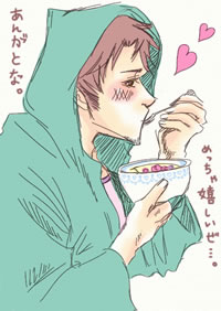 こんばんは〜またもや拍手ありがとうございます!お返事までしてもらえるだなんて!舞い上がっちゃうじゃないですかもうっ!← わぁ〜アシュレありがとうございます!サディクさんがとても喜びますよ!そして、やっぱり土受け独受け西受けですか!紗柚梨さんはサディクさんと同時に私の餌付けも成功しましたね!なんて恐ろしい子!(なんかすみませ) ちなみに独受け西受けでは、年中兄弟+子分親分がフィーバーです^^伊独も勿論大好きですが、兄さんとヴェストの間にある熱く滾った(性的な意味での)兄弟の絆(謎)には適わないという^q^ロマ西は、ロマががっつくのでも、トニーがやさしくリードしてあげるパターンでもどっちでも大好きですハァハァ・・・TOMATO soup(何故英語)に染まる親分が見てみたいものですゲフゥ← いや・・・むしろ(伊兄弟+ぷーさん+希)×(土独西)とかありですか?^q^カオスなノリの乱交パーリーとかどうで(ry 黒フェリたんに足蹴にされ、ロマに復讐される土様とかいかがですk(ry ・・・春のほのぼのぽかぽか陽気の中でも脳内が絶賛腐臭を放ち中ですみません。← 紗柚梨さんは、どの独受け西受けCPがお好きなのかものすごい気になります〜お暇な時にでも教えて下さいな^^そして、もう本当に熱く語りましょうぜ★←(なんかものすごい親近感を覚えてしまっていてごめんなさい・・・勝手に。) あ、後紗柚梨さんはHPとかお持ちでしょうか?もしそうでしたら、よろしかったら教えていただきたいです〜><すぐ遊びに行かせていただきますので^^。